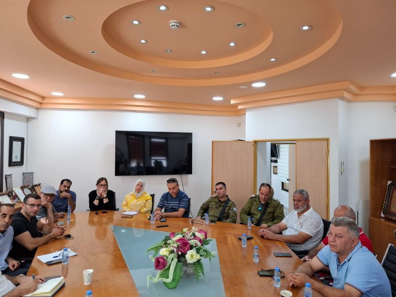 خلال الاجتماع عرض قائد الجبهة الداخلية موشيه حولي تعليمات لكيفية التعامل والتصرف في حالة سماع صافرات الانذار وشدد خلال عرضه للوضع على اهمية الالتزام بالتعليمات للحفاظ على امن وسلامة المواطنين.