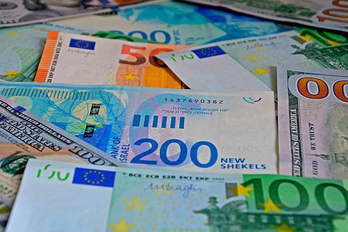 أما سعر صرف اليورو فقد تراجع بحوالي 0.8% ويبلغ اليوم 4.08 شيكل. ويقول محللون ان ارتفاع الشيكل يأتي في ظل الترقب للقمة التي ستعقد اليوم في العاصمة القطرية الدوحة، بخصوص الصفقة لتبادل الأسرى والمختطفين ما بين حماس وإسرائيل.