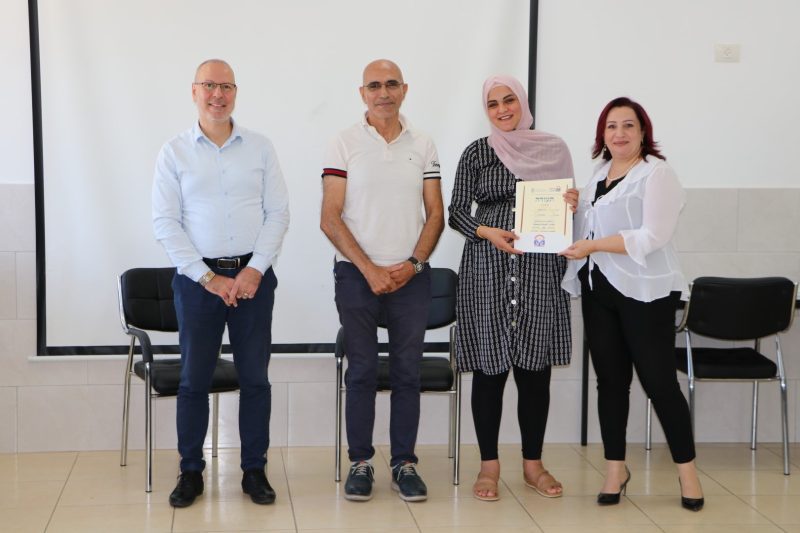 حضر الاحتفالية، التي كانت مختصرة وأجريت وفقًا لتوجيهات الجبهة الداخلية، الخريجون إضافة الى كل من بروفيسور ياسر عوّاد، نائب رئيس الكلّية للتخطيط الاستراتيجي والعلاقات الدوليّة والمسؤول عن مشروع، وبروفيسور فادية ناصر أبو الهيجاء، عميدة الكلّية، والسيّدة لينا بدر مركّزة المشروع والمحاضرة الرئيسية في المساق، والسيّد حسام إلياس، مدير عام الجمعية المسيحية العالميّة في البلاد.
