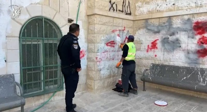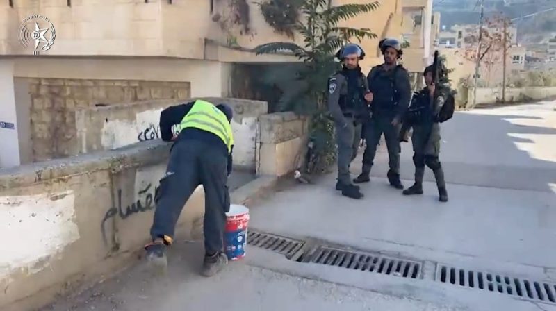 واضاف بيان الشرطة : ” في إطار النشاط تم تحديد ومحو كتابات تحريضية على الجدران، والتي تضمنت كلمات مديح، ودعم لقائد منظمة حماس يحيى السنوار، وتضمنت هذه الكتابات المدح والتشجع ودعم أعمال الشغب، والإخلال بالنظام العام ودعم المنظمات ، والمس بالسكان المحليين وبأمنهم وسلامتهم.