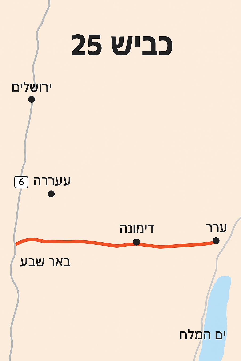 25 بين بئر السبع وديمونا، لتشكل امتدادًا استيطانيًا مهمًا في وسط النقب. تأتي هذه الخطوة لتلتحق بخمس مستوطنات في وادي عراد التي تخضع حاليًا لإجراءات إنشاء متقدمة.