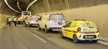 أفادت الطواقم التابعة لنجمة داوود الحمراء أنه في تمام الساعة 16:30 ورد بلاغ إلى مركز الطوارئ 101 في منطقة القدس عن وقوع حادث طرق خطير داخل نفق في طريق يتسحاق شمير، بمشاركة عدة مركبات بينها حافلة.