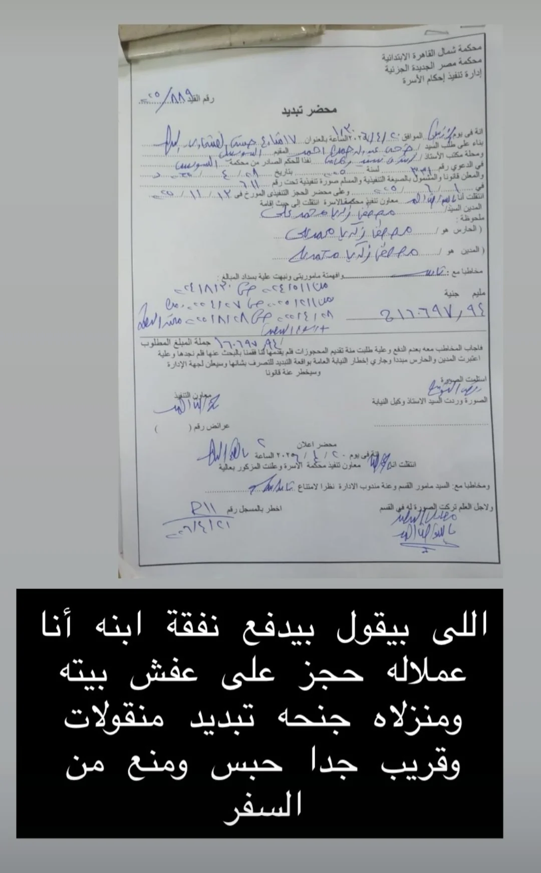 وفي ردها الأول على تلك التصريحات نشرت طليقة مسلم، صورًا لمستندات قضايا حررتها ضده منها محضر تبديد، وعلقت: “اللي بيقول بيدفع نفقة ابنه أنا عملاله حجز على عفش بيته ومنزلاه جنحة تبديد منقولات وقريب جدًا حبس ومنع من السفر”.